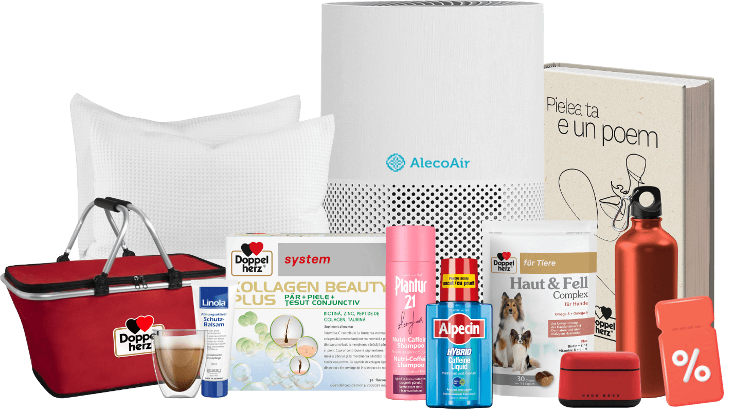 Campania se desfășoară în perioada 01 – 31 decembrie 2024 și este supusă unor termene și condiții. Imaginile sunt cu titlu de prezentare, aspectul și culorile premiilor pot varia.